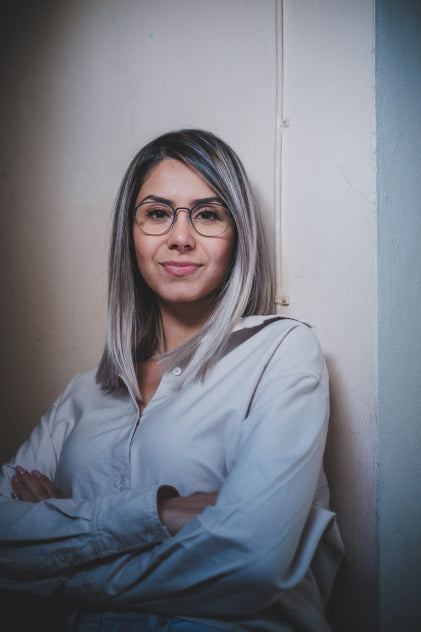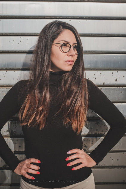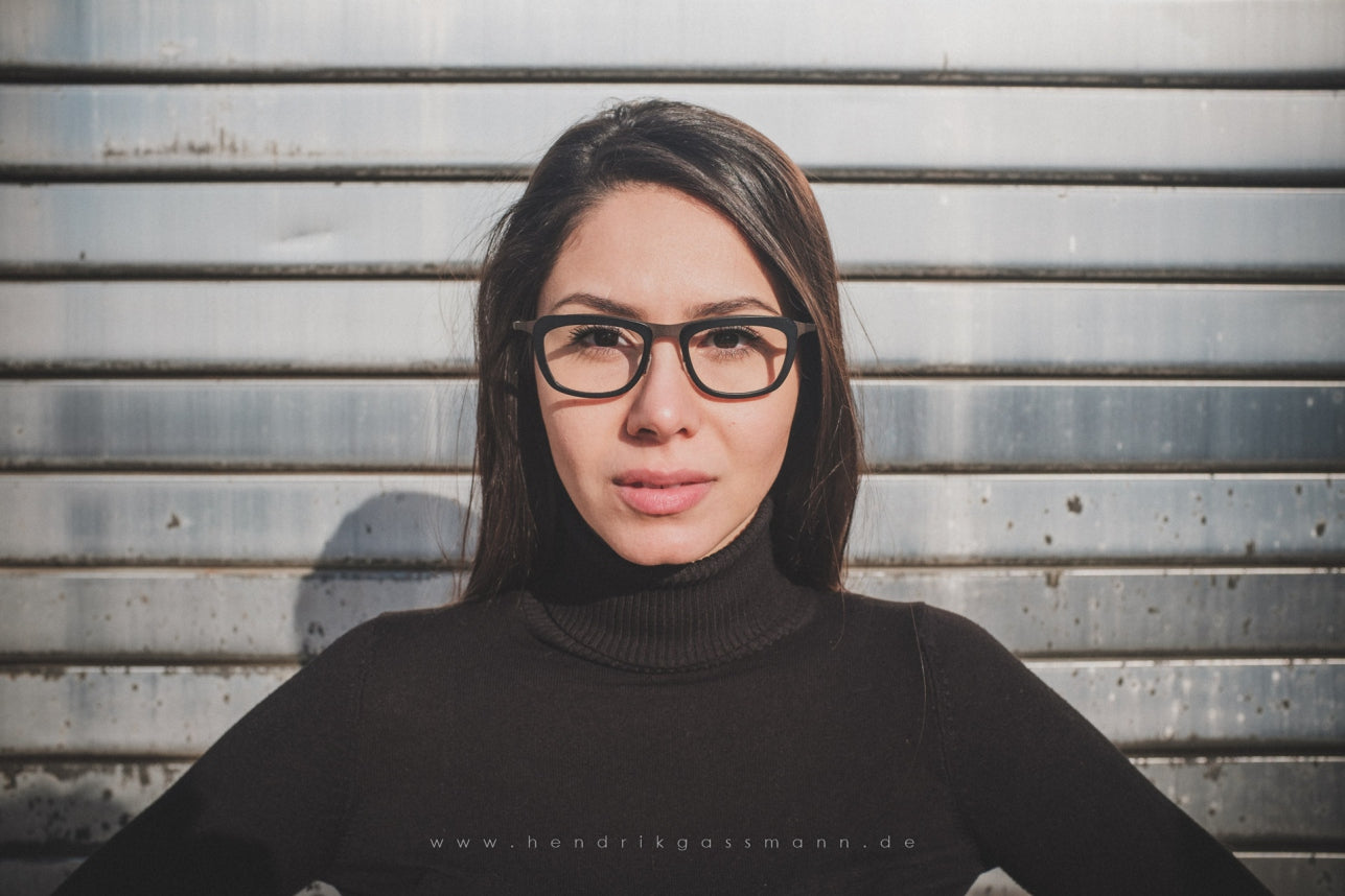 HR 6 - eine Anleihe aus den 60ern. Betonter Oberrand und mit Acetatbügeln. Gamze trägt VR 09.